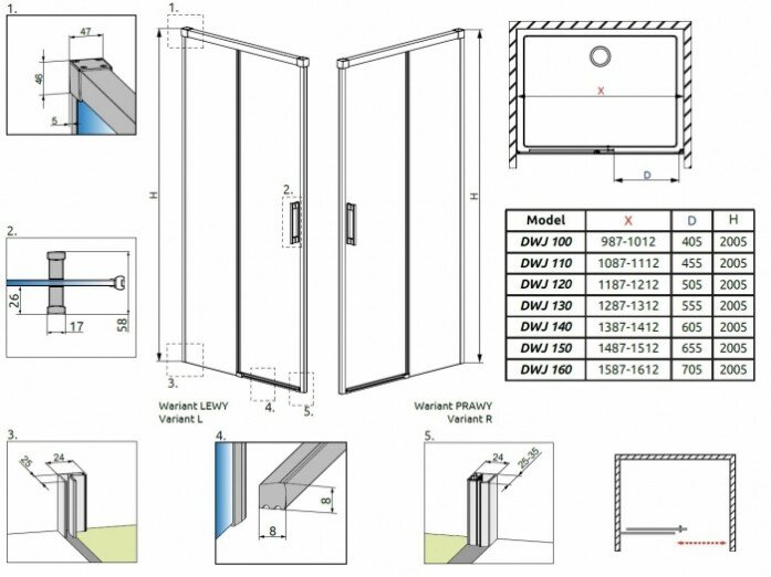 Душевая дверь Radaway Almatea DWJ 120 стекло прозрачное/профиль хром левая