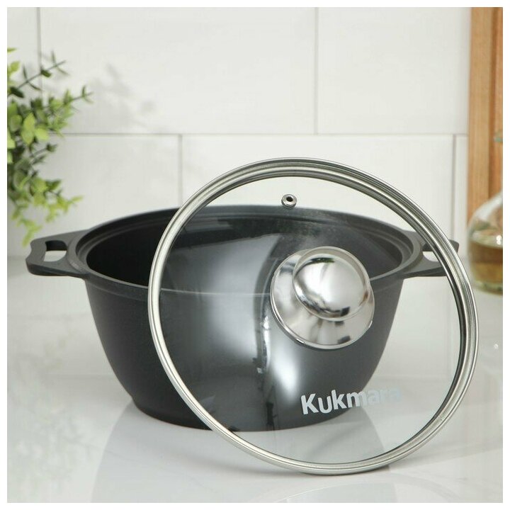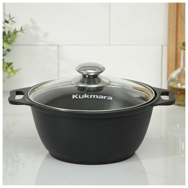 KUKMARA Кастрюля «Традиция», 4 л, 32×26,5×14,3 см, стеклянная крышка, антипригарное покрытие, цвет чёрный