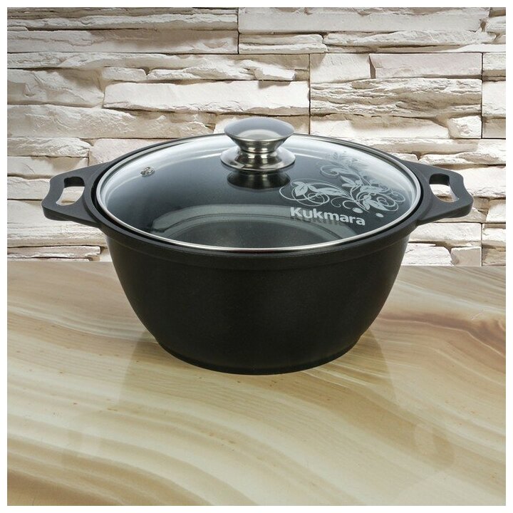 Кастрюля KUKMARA «Традиция», 4 л, 32×26.5×14.3 см, антипригарное покрытие, литой алюминий, чёрная
