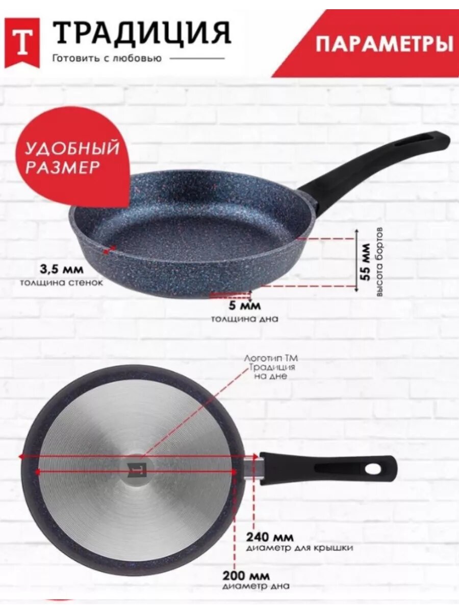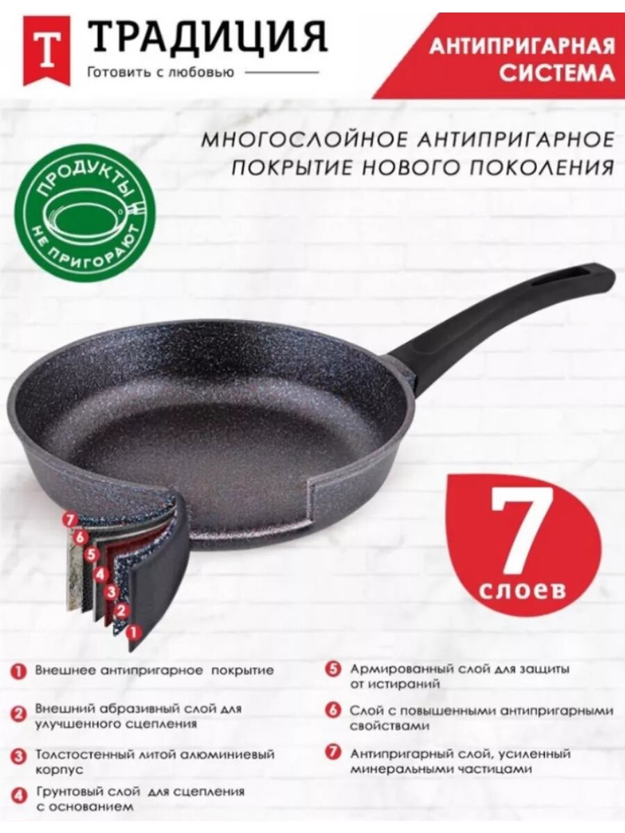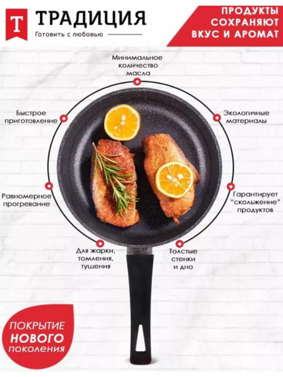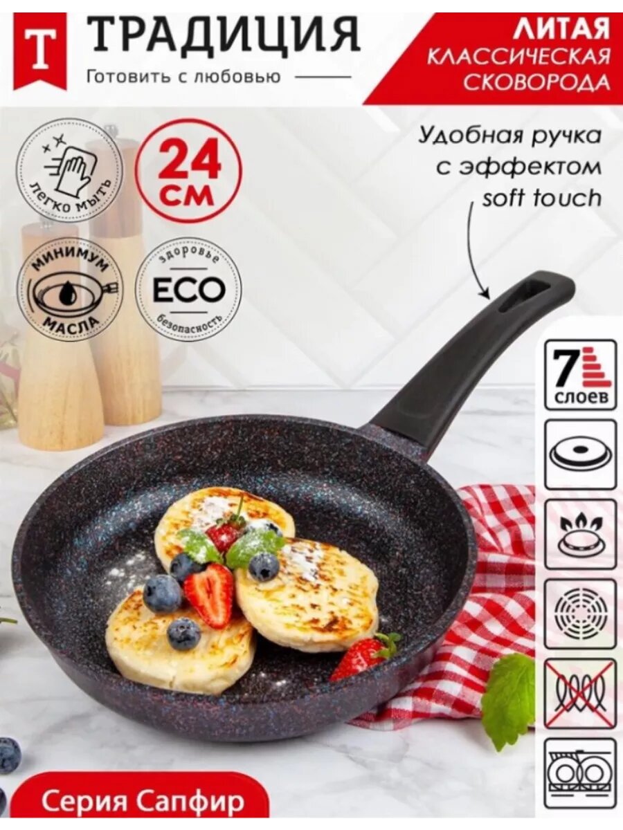 Сковорода Традиция Сапфир ТС2241 антипригарное покрытие литая 24см интересное: