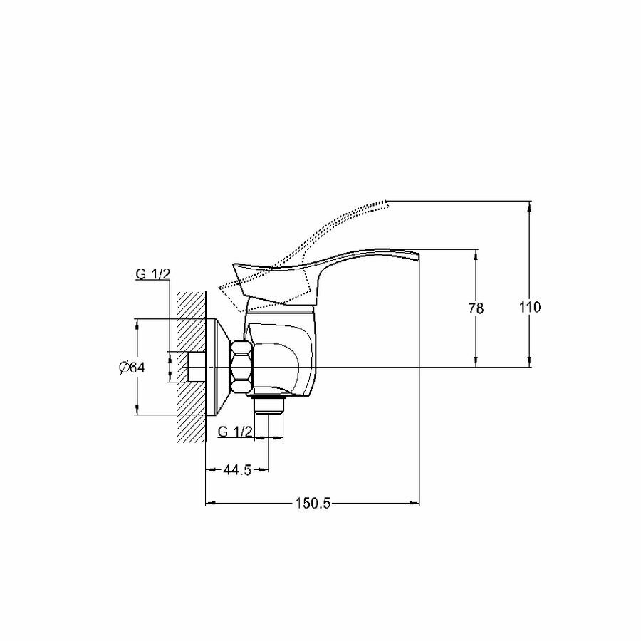 Смеситель для душа без излива, для душевой кабины, ванной Solone FAB5-A020, цвет: хром