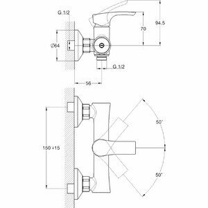 Смеситель для душа SOLONE FAB5-A020 кер. картридж ⌀25, хром