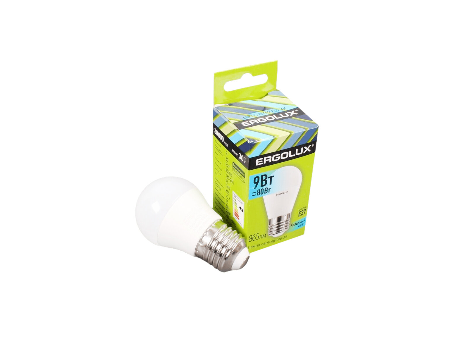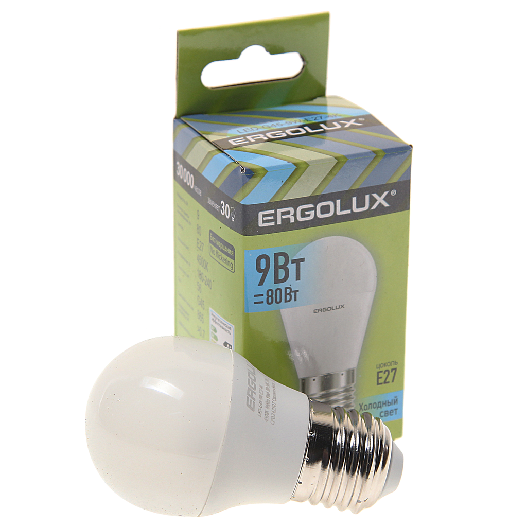 Лампочка ERGOLUX LED-G45-9W-E27-4K Шар 9 Вт, E27, белый