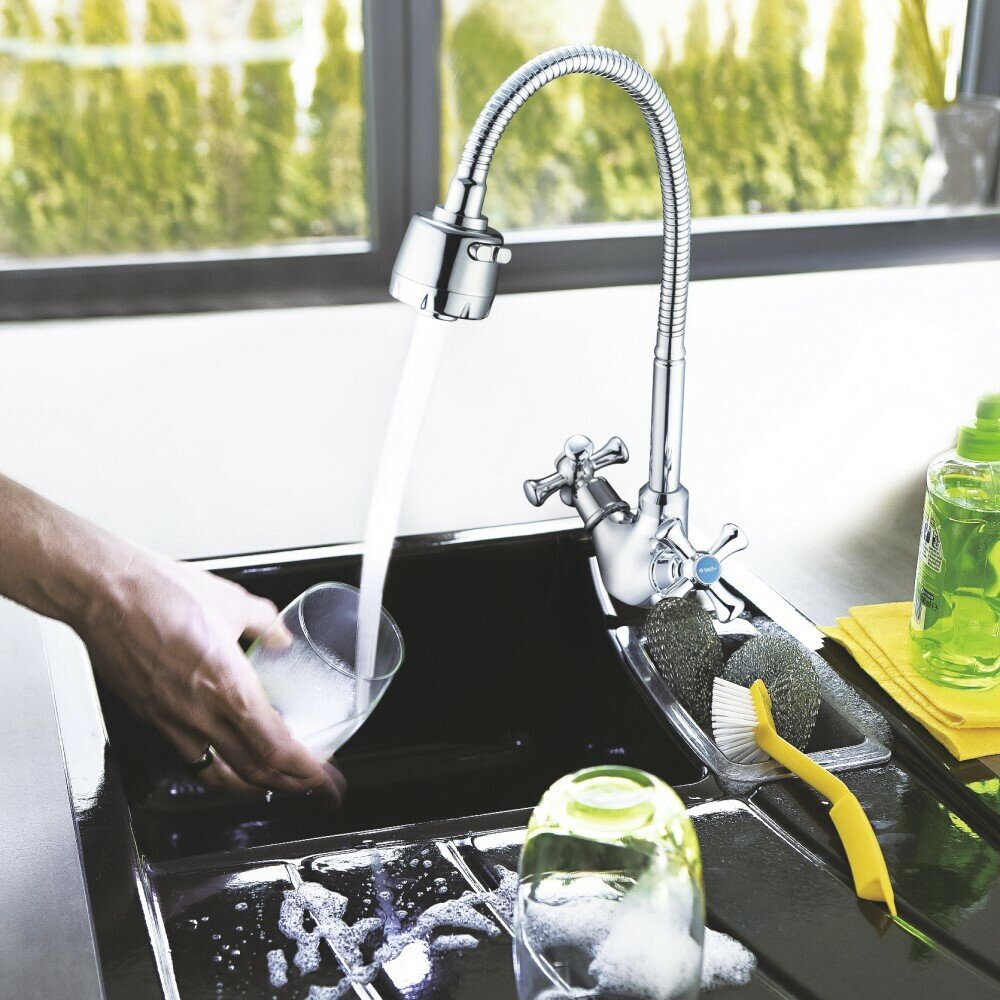 Смеситель для кухни, G.lauf, гибк излив, с кран-буксой, хром, QTZ4-E827