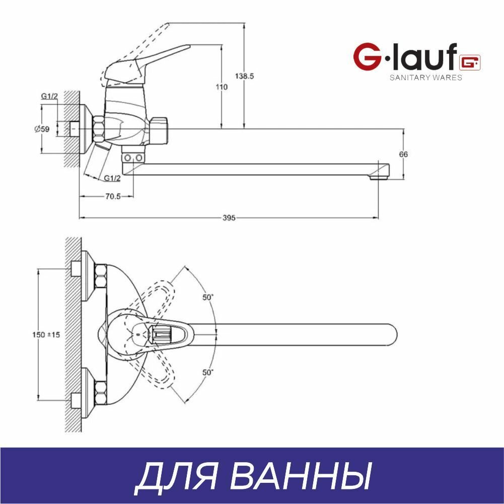 Смеситель G.lauf KLO7-A048 для ванны и душа, хром интересное: