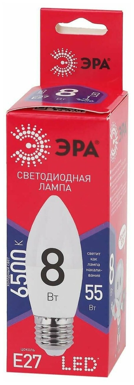 LED B35-8W-865-E27 R (диод, свеча, 8Вт, хол, E27), ЭРА Б0045342 (1 шт.)