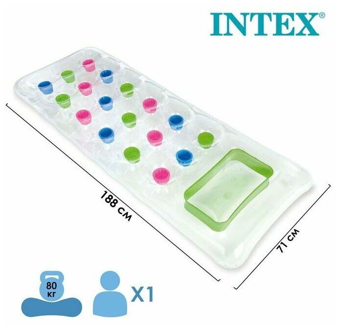 Матрас с подстаканниками Бар зеленый прозрачный (188х71 см) Intex 59894-KR2