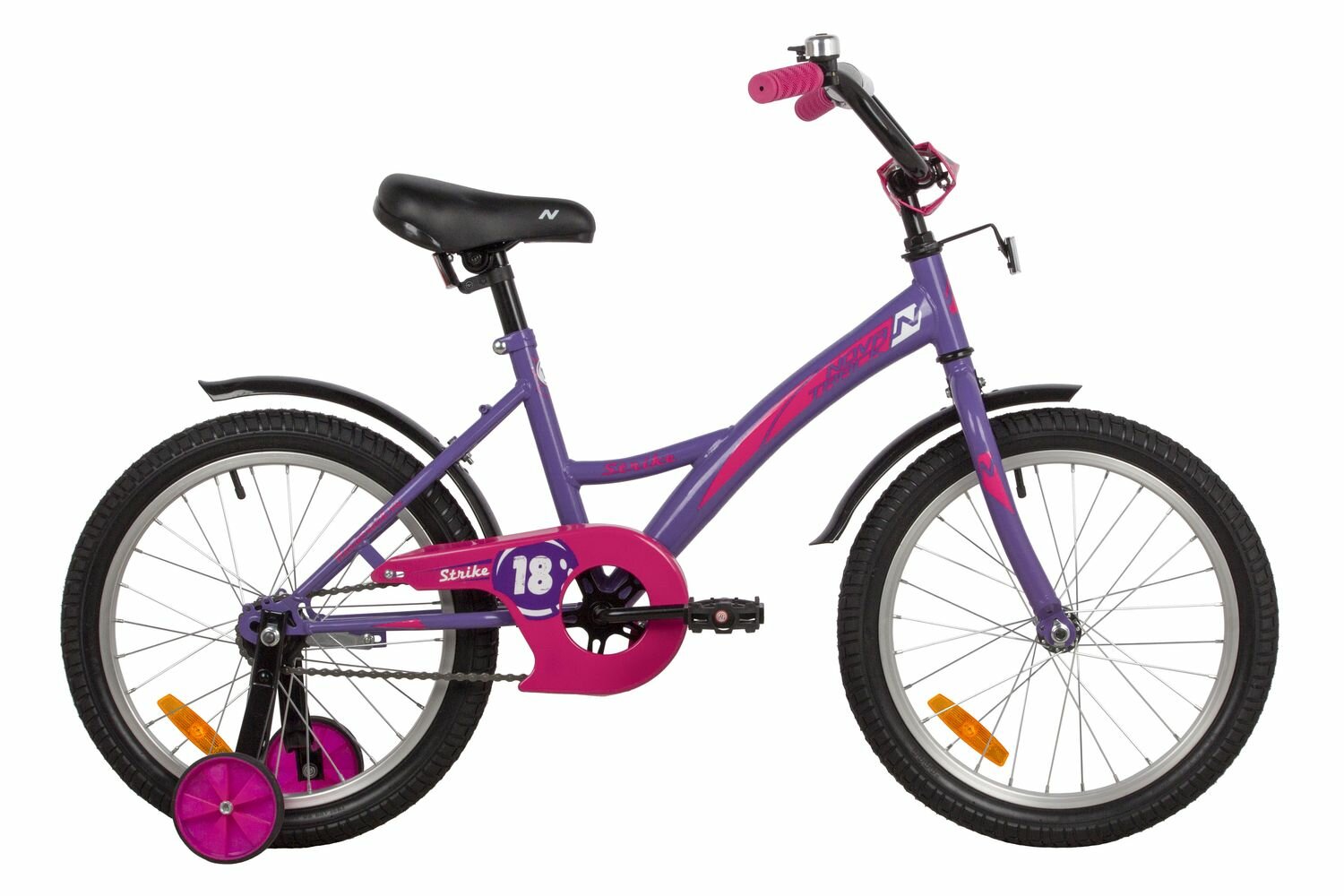 Велосипед NOVATRACK 18" STRIKE фиолетовый, тормоз ножной, крылья короткие, защита А-тип / велосипед детский