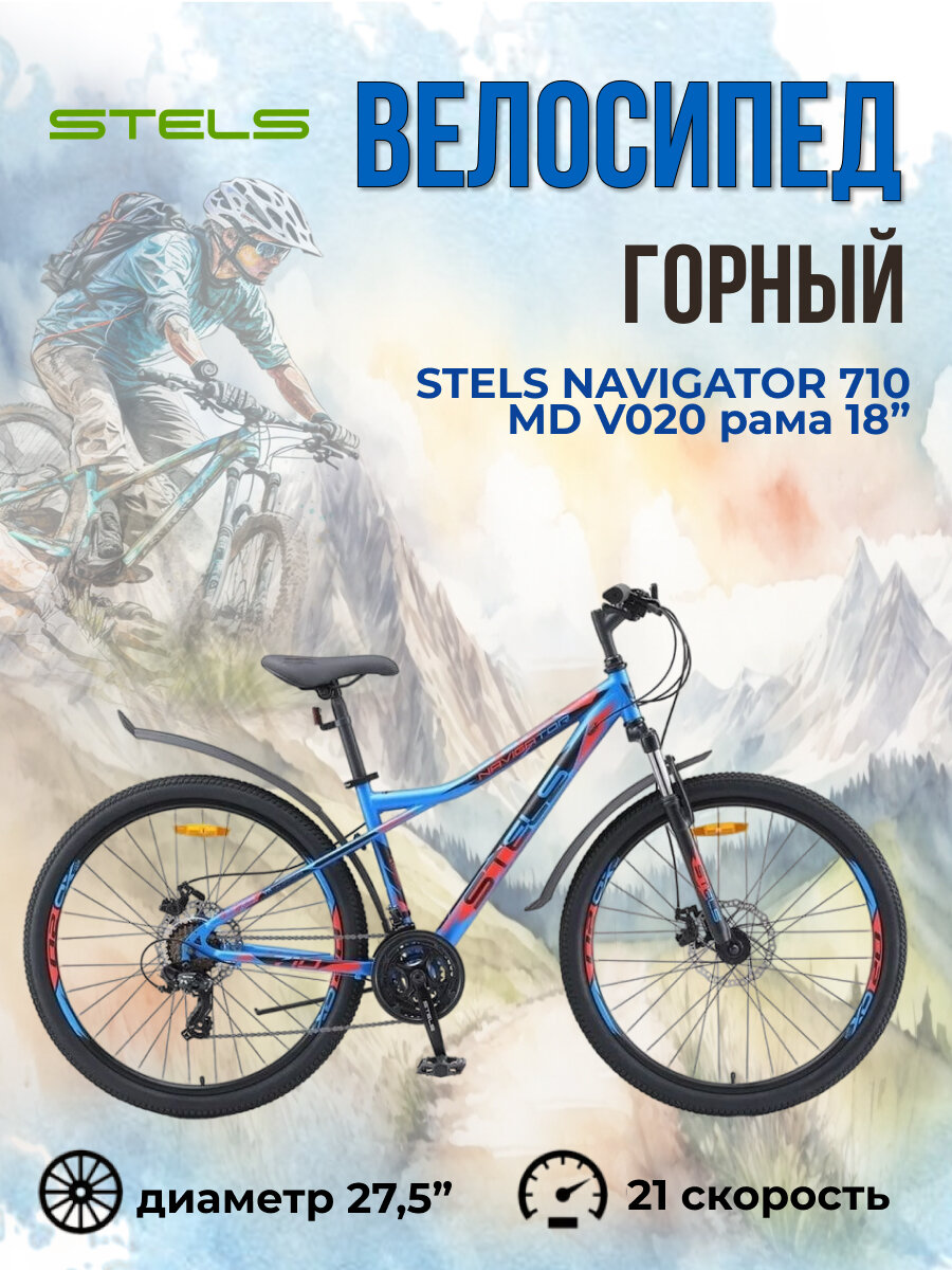Велосипед горный STELS Navigator 710 MD 27.5" V020, 18" синий/чёрный/красный