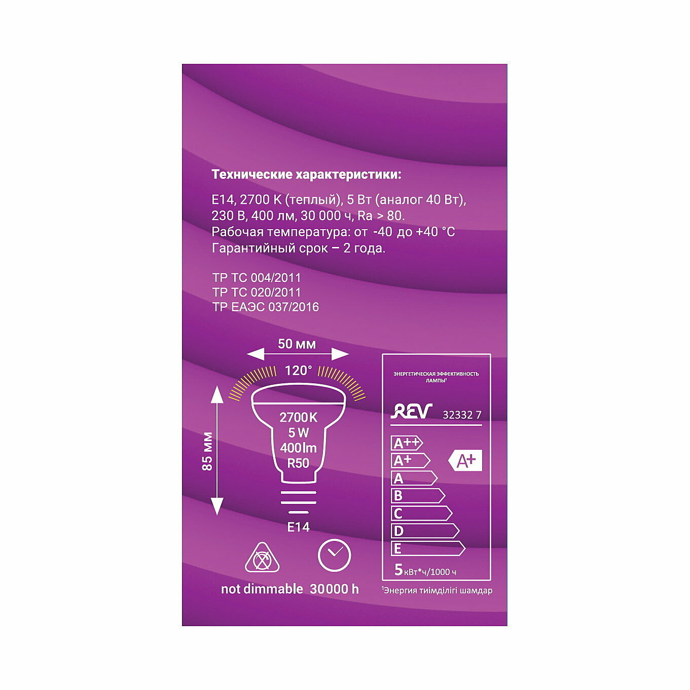 Купить Лампа светодиодная R50 Е14 5W 2700K теплый свет REV 32332 7