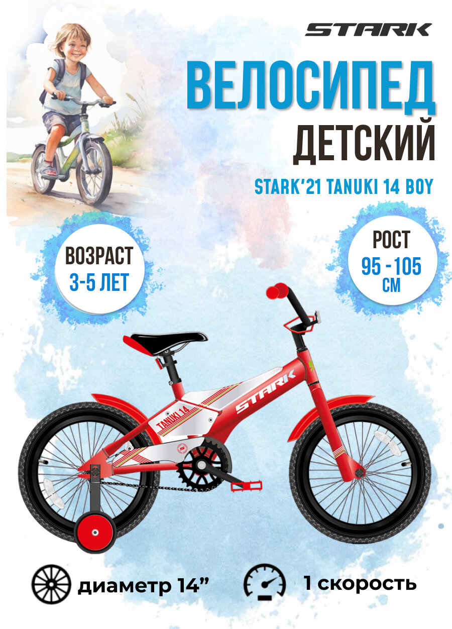 Велосипед детский Stark'21 Tanuki 14 Boy красный/белый HD00000307 интересное: