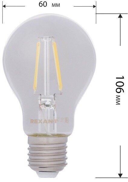Филаментная лампа REXANT Груша A60 11.5 Вт 2700K E27 604-076