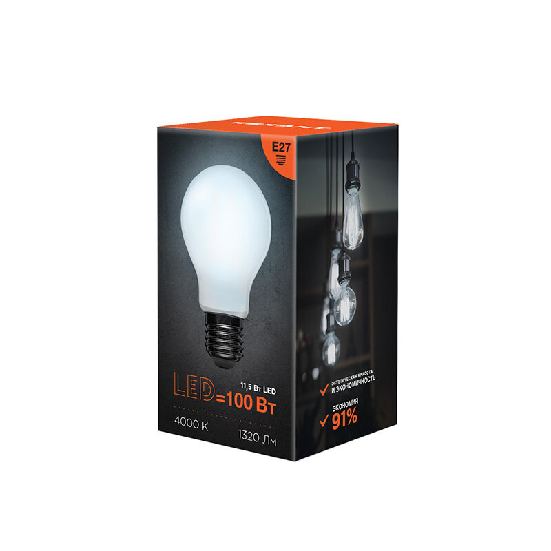 Лампочка филаментная REXANT Груша A60 11.5 Вт 1320 Лм 4000K E27 матовая колба