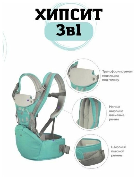 Эрго рюкзак хипсит кенгуру Aiebao 3-36 месяцев / рюкзак-слинг для новорожденных/ кенгуру для переноски/ рюкзак-переноска (зеленый) интересное: