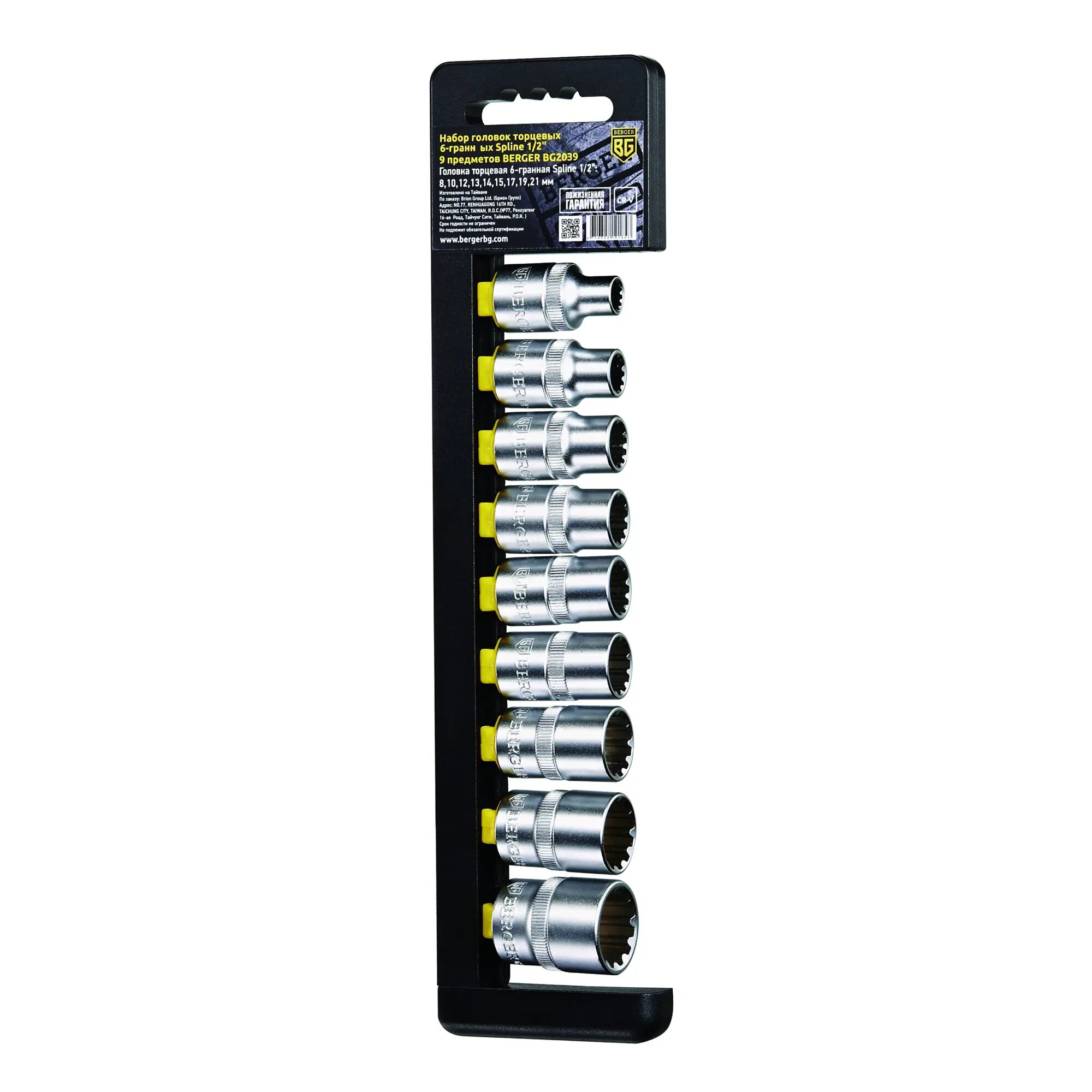 Набор головок торцевых BERGER 1/2'' Spline 9 предметов (8-21 мм) BG2039