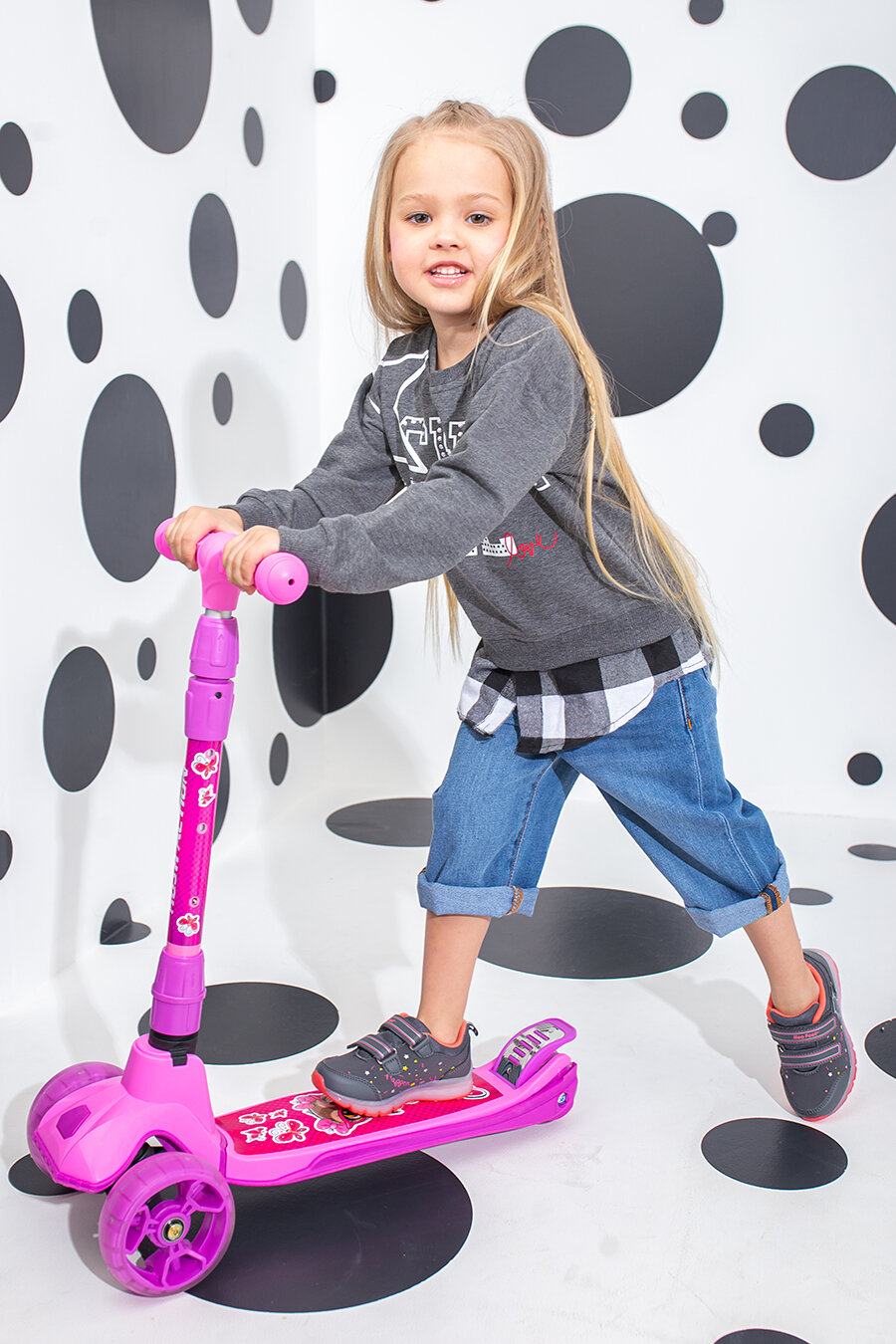 Самокат детский трехколесный COMIRON Yeenot "Зверята", регулируемая складная ручка, светящиеся колеса 110 и 75 мм, нагрузка до 40 кг, розовый / 1 шт.