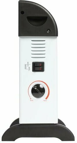 | Минусы: | Собран криво, пластиковые серые "уши" болтаются, дырки под ножки на самом конвекторе не в тех местах, где они на ножках, т.е. не совпадают, общее впечатление, когда держишь в руках - "только бы прямо сейчас не развалился". Омерзительное качество сборки в общем. По сути представляет из себя криво собранную металлическую коробку с металлической нагревающейся решёткой внутри и крутилкой регулятором. И всё. |