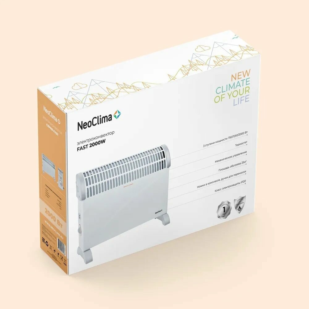 Конвектор Neoclima Fast, 2000Вт, с терморегулятором, белый
