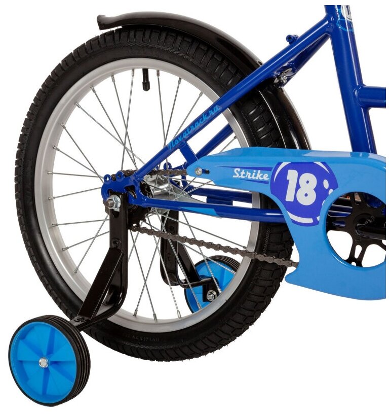 Велосипед NOVATRACK STRIKE 18" (2022) (Велосипед NOVATRACK 18" STRIKE синий, тормоз нож, крылья корот, защита А-тип)