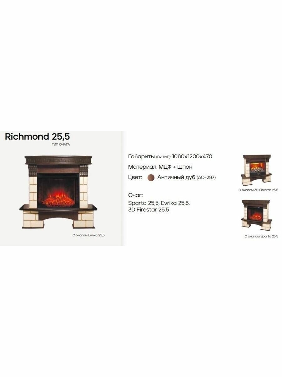 Купить Электрокамин RealFlame Richmond 25.5 АО-297 с очагом Evrika 25,5 LED