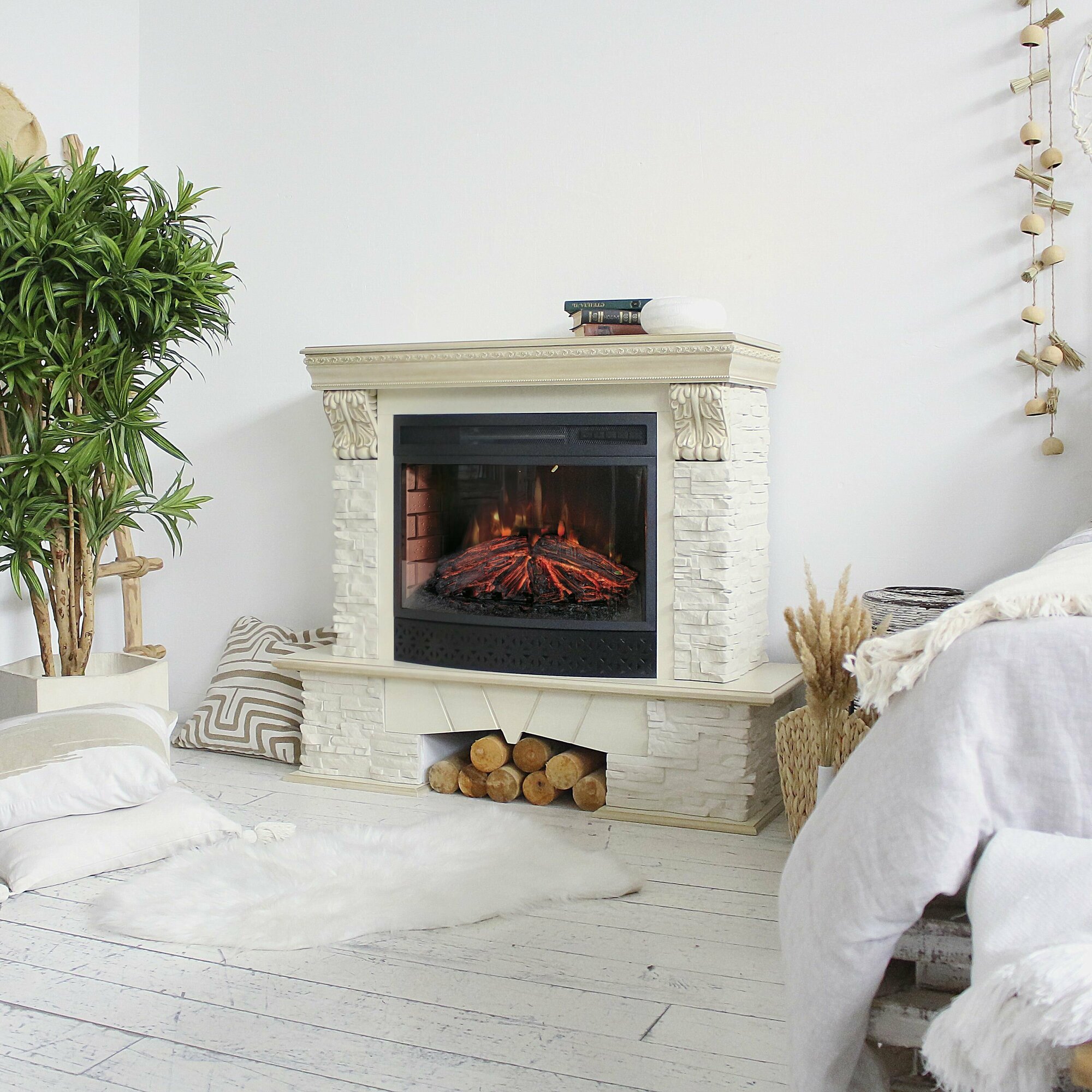 Электрокамин Real Flame Rockland LUX 25/25,5 WT-619G с очагом Firefield 25 S IR (дуб белый / патина)