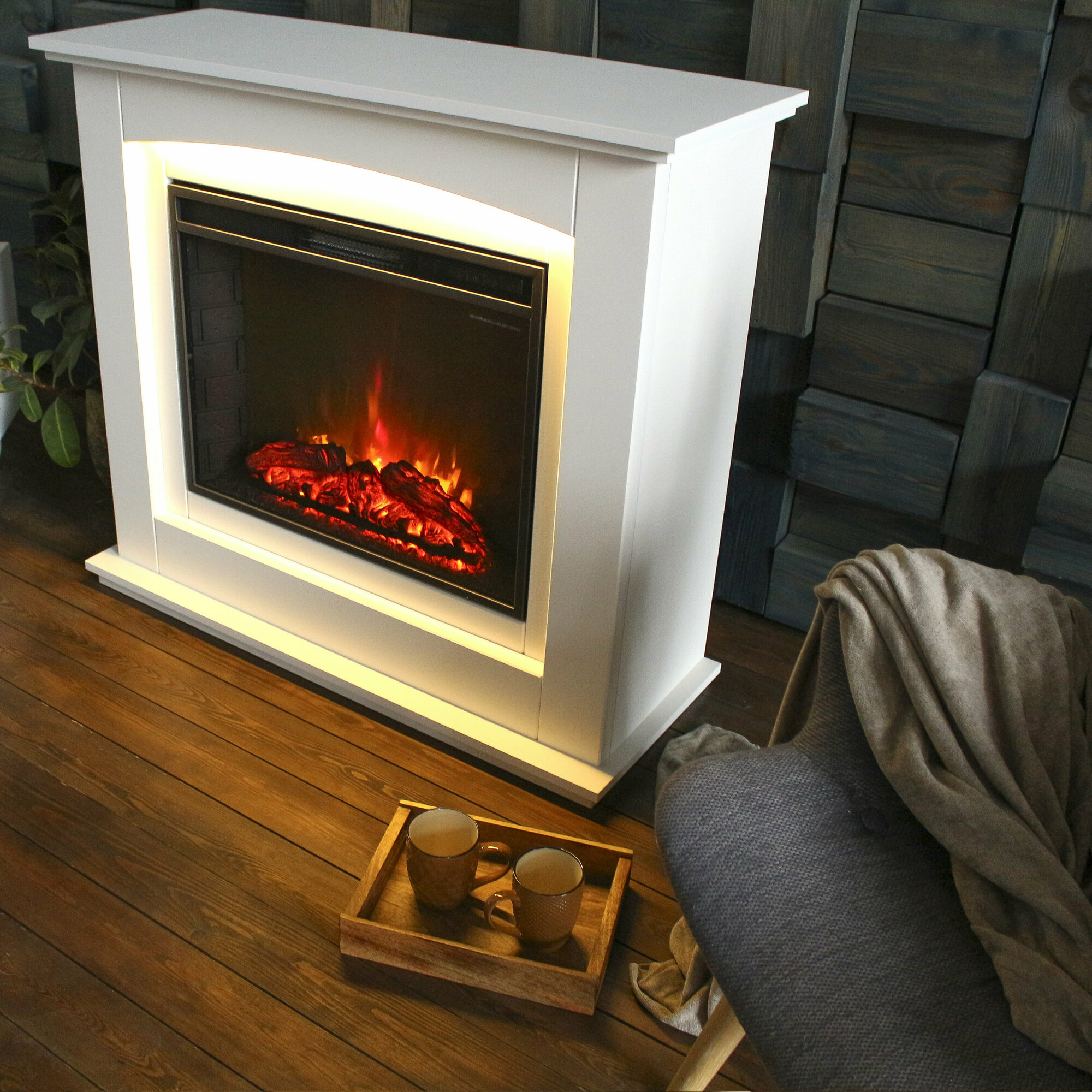 Электрокамин RealFlame Canada 25,5 WT МДФ с очагом Sparta 25,5, звуковая имитация, пульт ДУ, обогрев, имитация пламени, звук