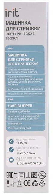 Машинка для стрижки Irit IR-3309, 10 Вт, 4 насадки, 220 В, синяя (1шт.)