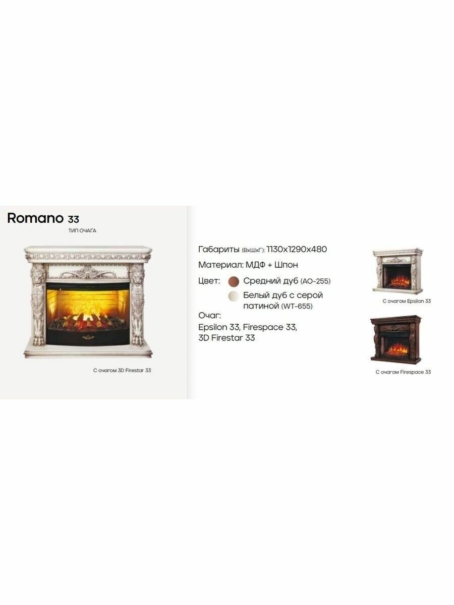 Электрокамин RealFlame Romano 33 AO-255 с очагом Firespace 33 интересное: