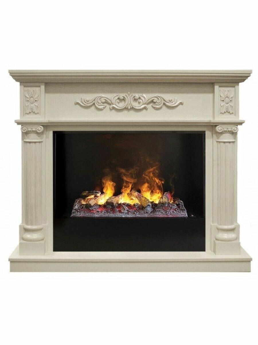Электрокамин Real Flame Silvia 26 WT-619B/659B с очагом 3D Cassette 630 + Black вст. (беленый дуб / бежевый)