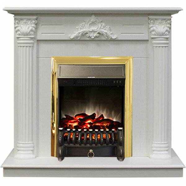 Купить Электрокамин RealFlame Stefania с очагом Fobos Lux Brass Белое золото (WT-F614)