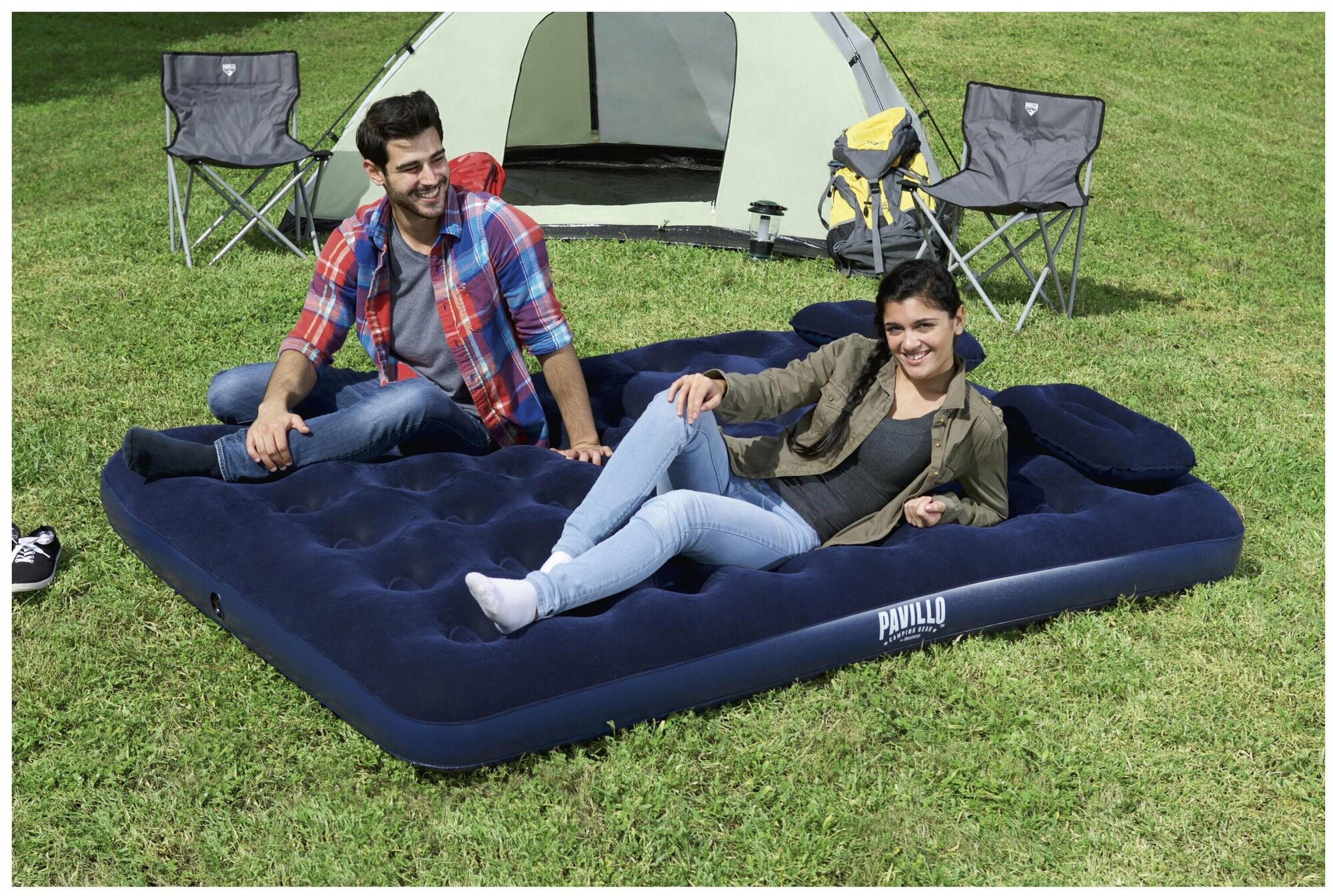 | Отзыв: | хороший набор, подушки в комплекте, есть заплатка на всякий случай, насос хлипковат, но свою функцию выполняет |