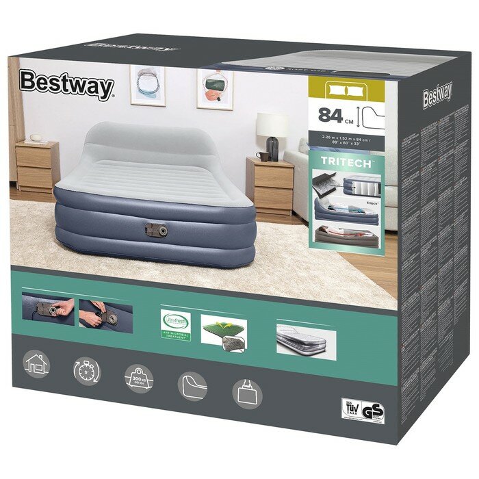 Bestway Кровать надувная Tritech Queen SleekFlow с изгол. со встр электр 226 x 152 x 84 см 67923 интересное: