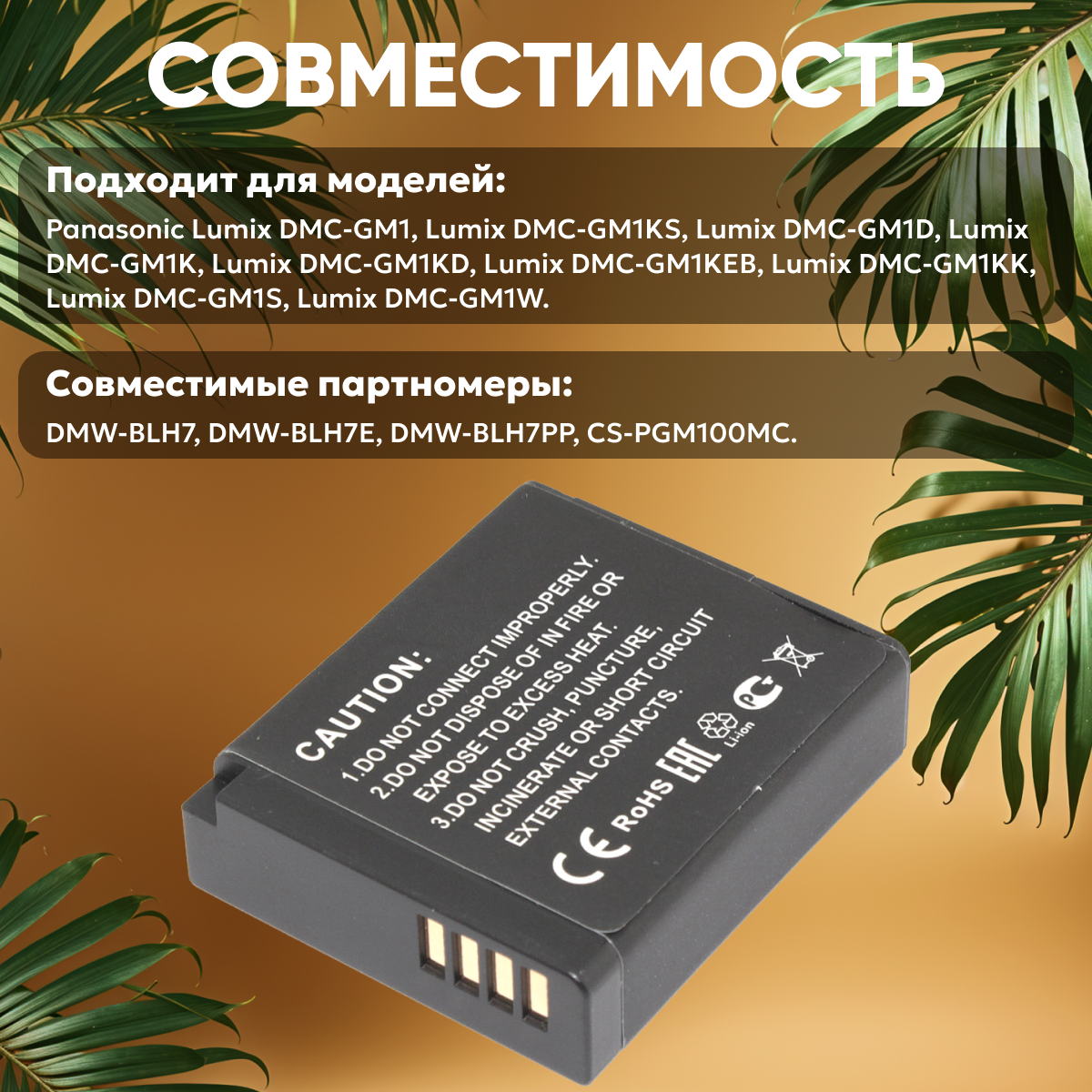| Совместимость | Panasonic Lumix DMC-GM1, Lumix DMC-GM1KS, Lumix DMC-GM1D, Lumix DMC-GM1K, Lumix DMC-GM1KD, Lumix DMC-GM1KEB, Lumix DMC-GM1KK, Lumix DMC-GM1S, Lumix DMC-GM1W, Lumix DMC-GM1kW, Lumix DMC-GM5, Lumix DMC-GM5K, Lumix DMC-LX10 |