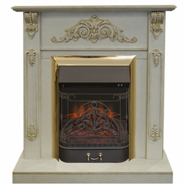 Электрокамин RealFlame Anita с очагом Majestic Lux Brass Белый дуб с золотой патиной