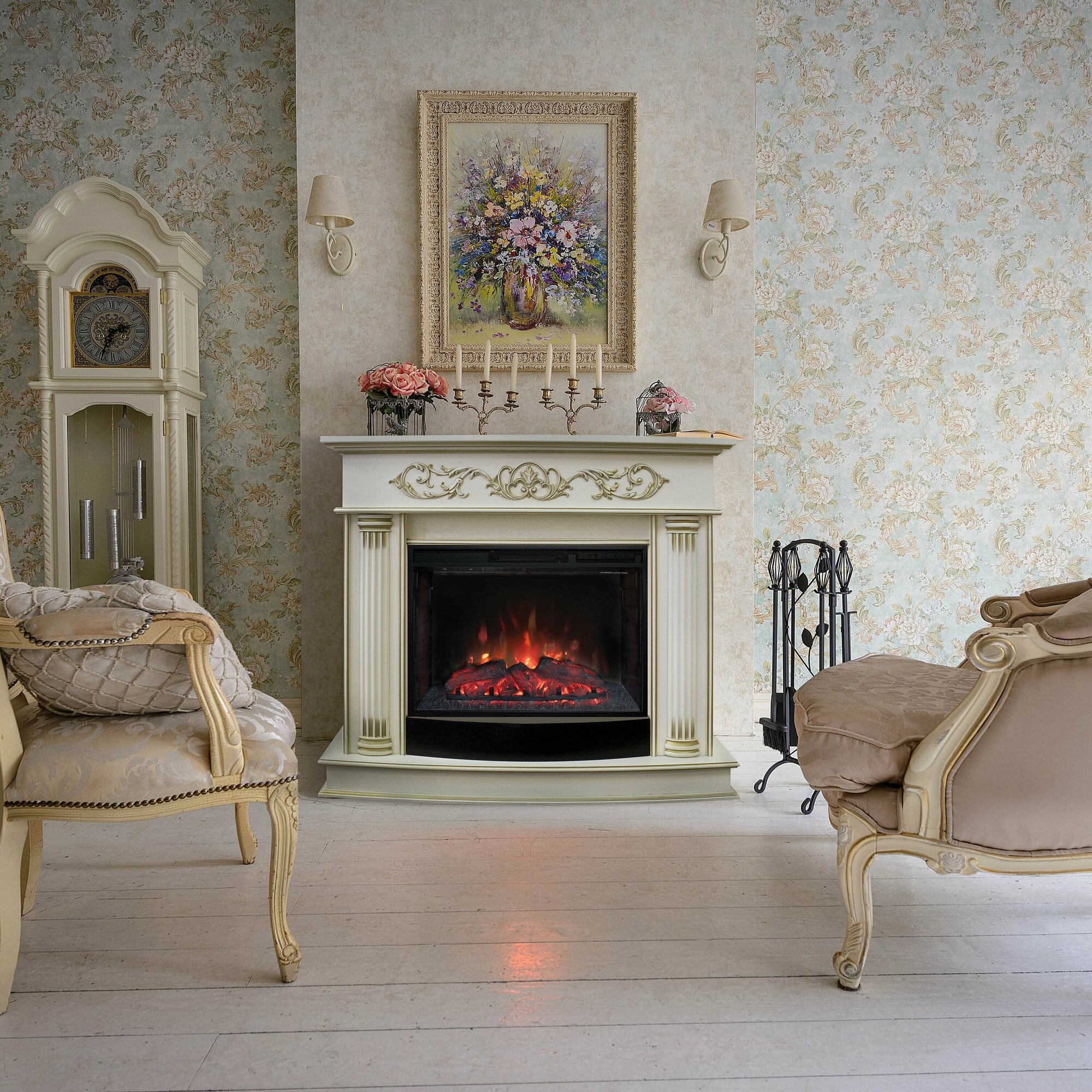 Электрокамин Real Flame Milano 25/25,5 WT-619G с очагом Sparta 25,5 LED (белый)