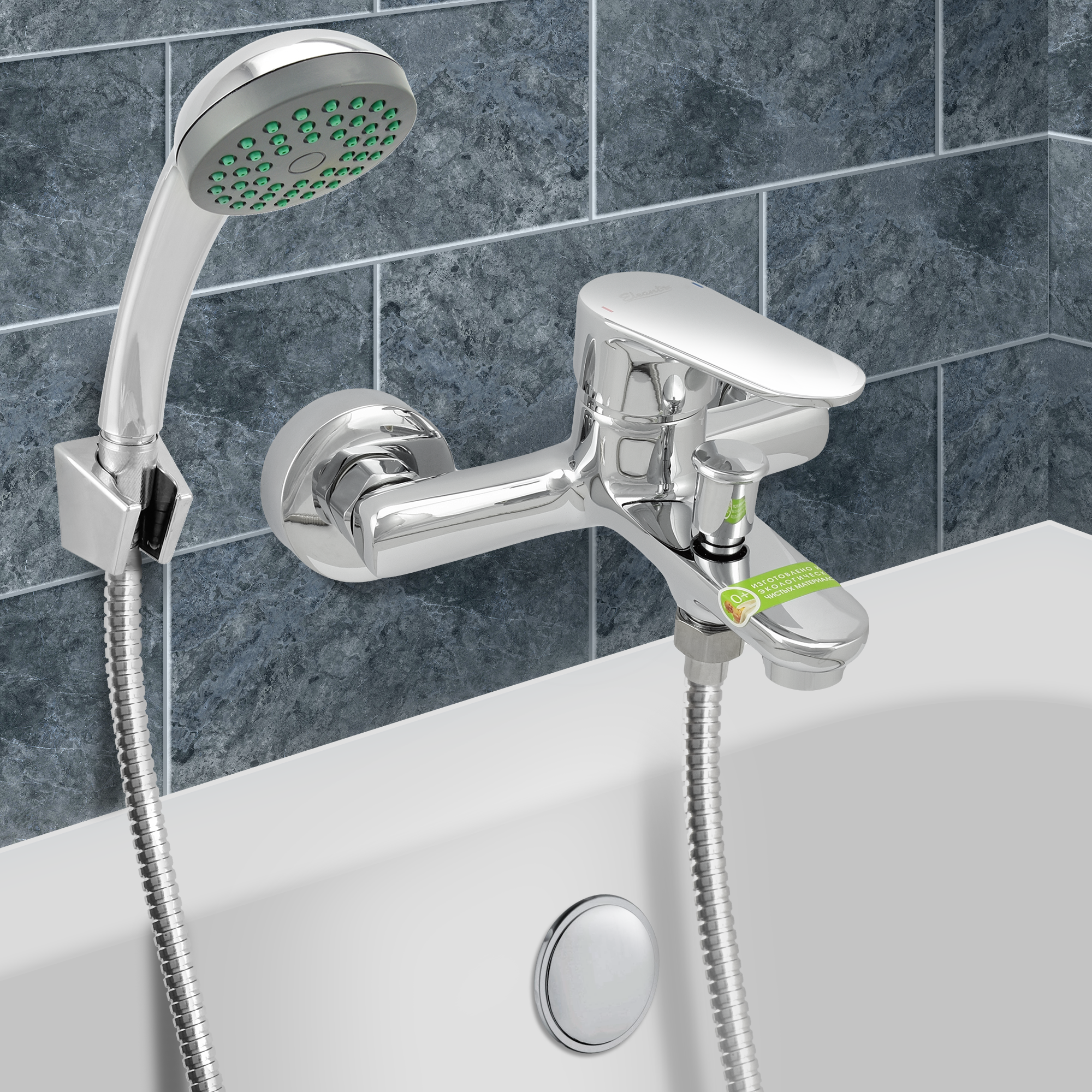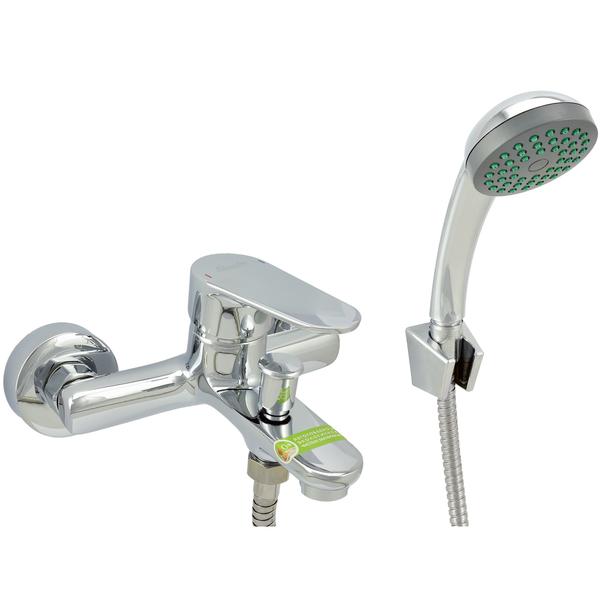 Смеситель ванно-душевой одноручный "Eleanti" с металлическим шлангом, хром. лейкой и кронштейном, EL