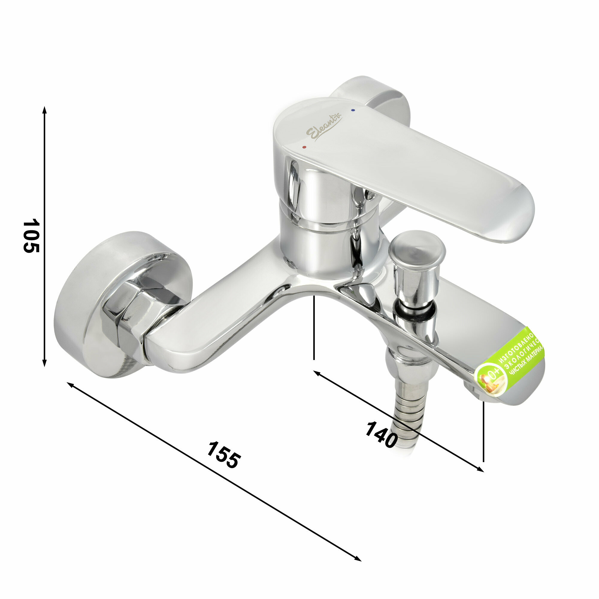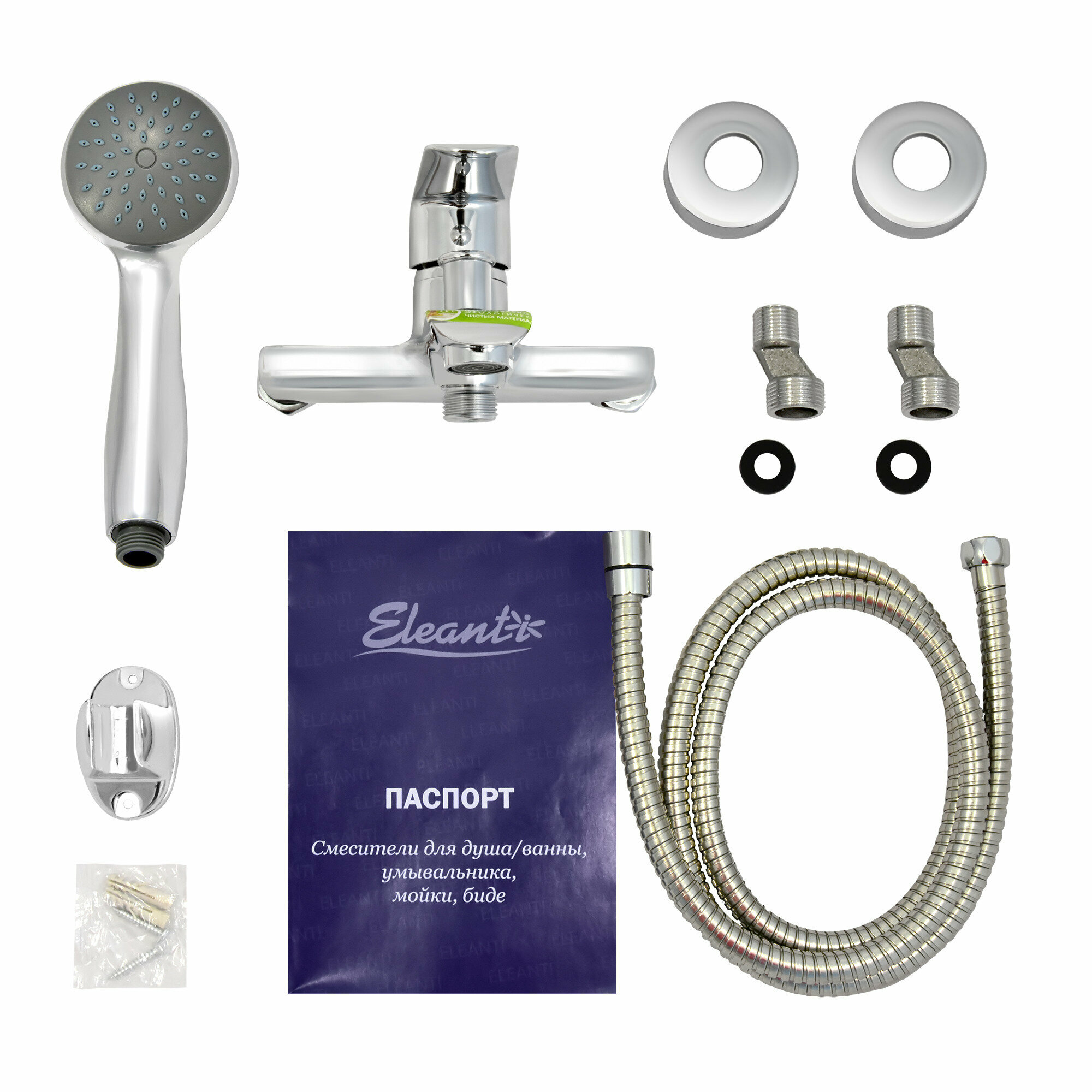 Смеситель ванно-душевой одноручный "Eleanti" с металлическим шлангом, хром. лейкой и, картридж 35 мм
