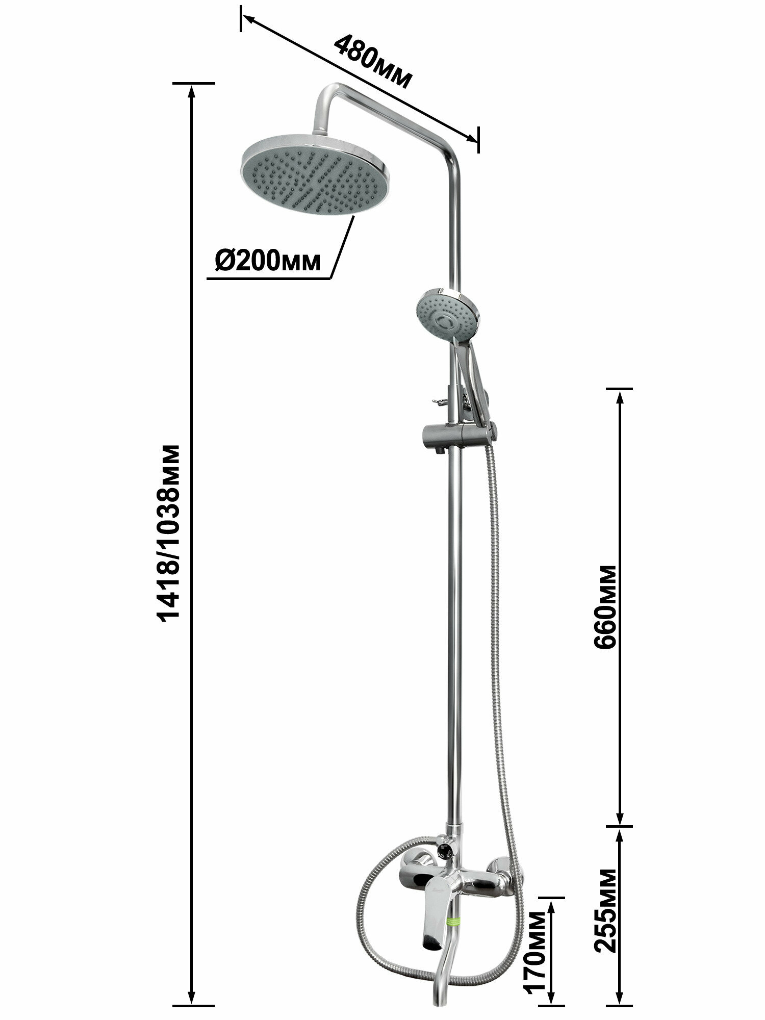 Одноручный смеситель Eleanti ванно-душевой, латунный с тропическим душем, диаметром 20 см 0402.479