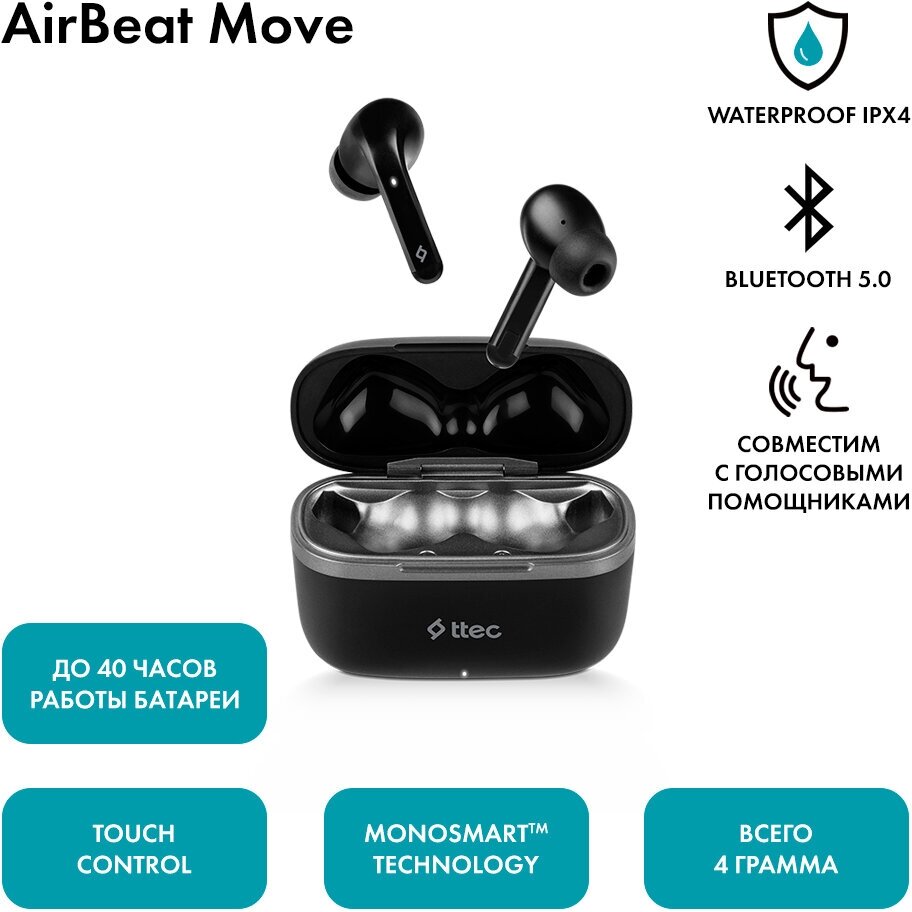 Наушники беспроводные Ttec AirBeat Move TWS Черный 2KM138S интересное: