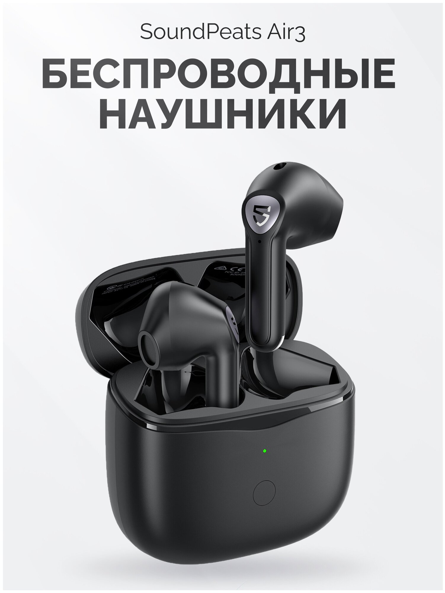 Беспроводные наушники SoundPeats Air3 TWS черные, Bluetooth 5.2 гарнитура с сенсорным управлением и автопаузой