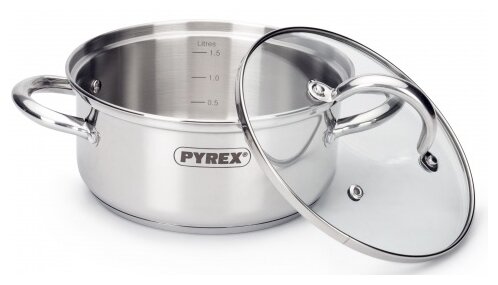 Кастрюля из нержавеющей стали со стеклянной крышкой Master 20x9.5см 2.8л,PYREX