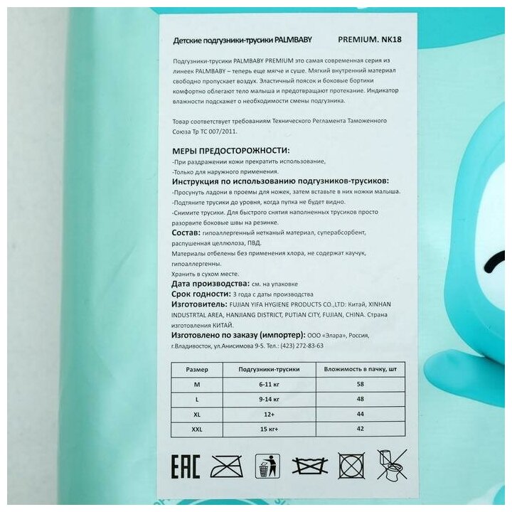 Подгузники-трусики ЭлараKIDS Palmbaby Premium (6-11 кг), 58шт