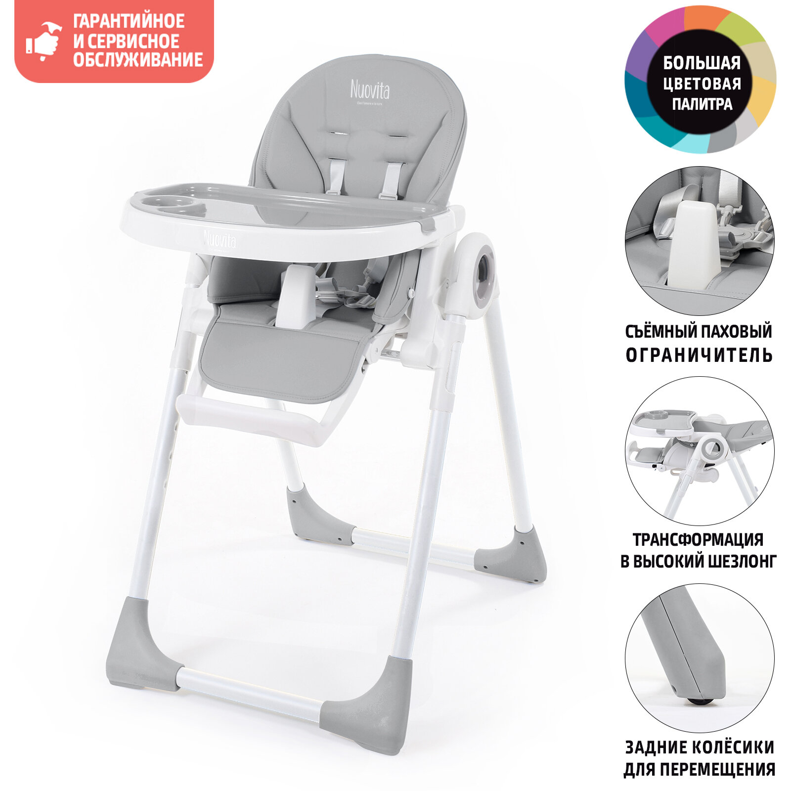 Купить Стульчик для кормления Nuovita Lembo (Grigio, Bianco/ Серый, Белый)