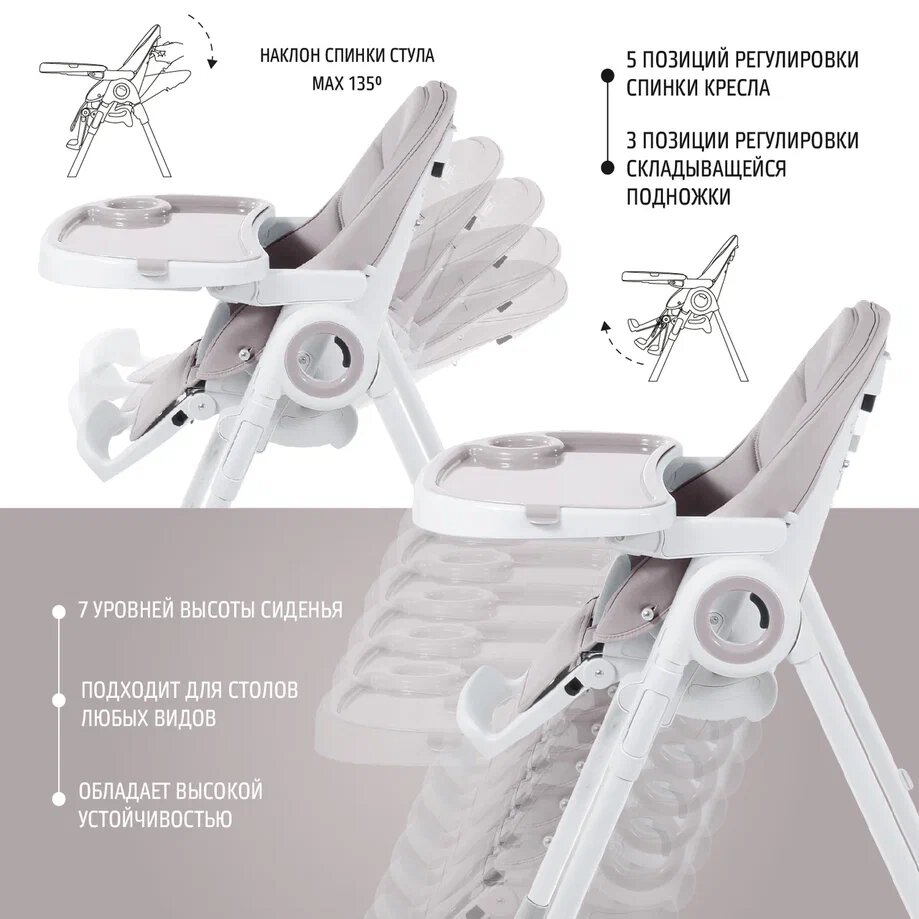 | Регулировка | высоты стульчика / наклона спинки / положения столика / положения подножки |