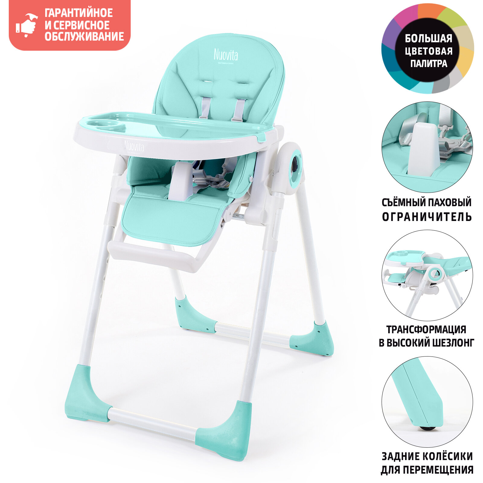 Стульчик для кормления Nuovita Lembo (Turchese, Bianco/Бирюзовый, Белый)