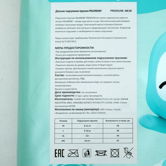 Подгузники-трусики ЭлараKIDS Palmbaby Premium (6-11 кг), 58шт./В упаковке шт: 1 интересное: