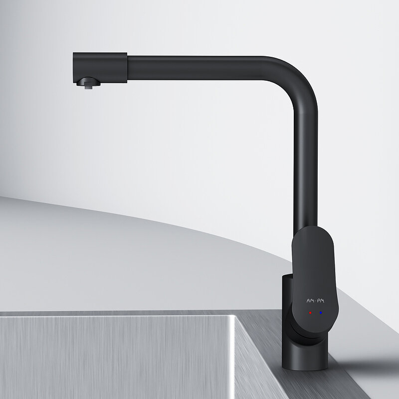 Смеситель для кухни AM.PM F8005722, L-излив, черный, с каналом для питьевой воды