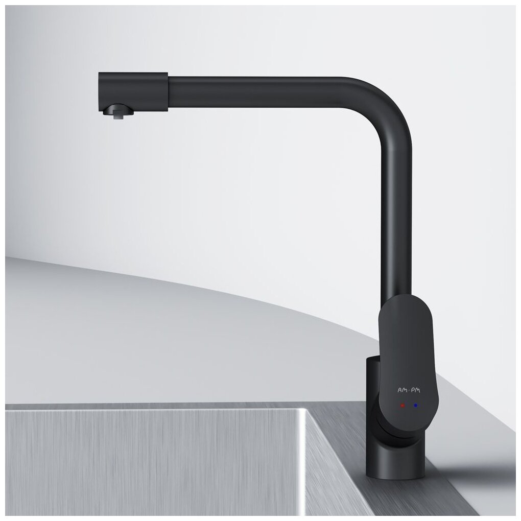 Смеситель для кухни AM.PM F8005722, L-излив, черный, с каналом для питьевой воды