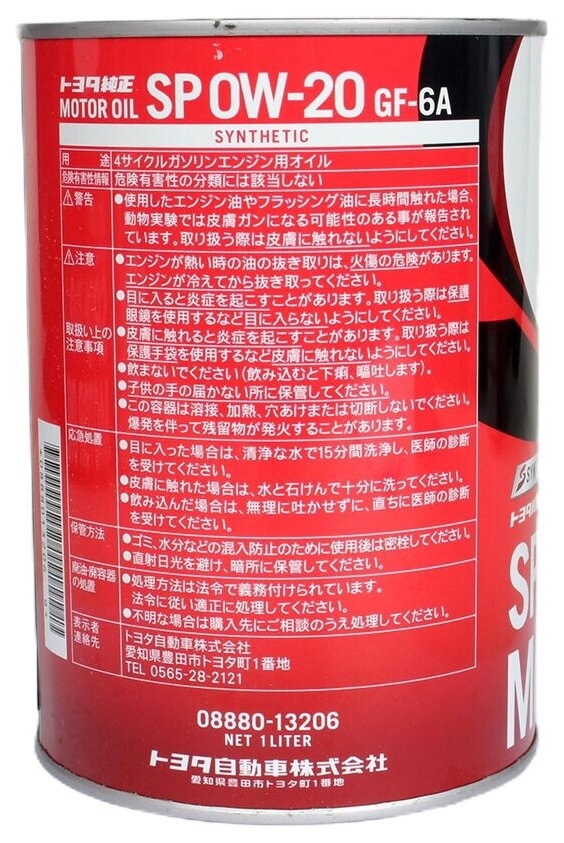 Ниже Вы можете прочитать отзывы на Масло моторное Toyota 0W-20 SP 1 л синт. 08880-13206, ознакомится с подробными характеристиками, посмотреть интересные обзоры и фотографии на Масло моторное Toyota 0W-20 SP 1 л синт. 08880-13206.