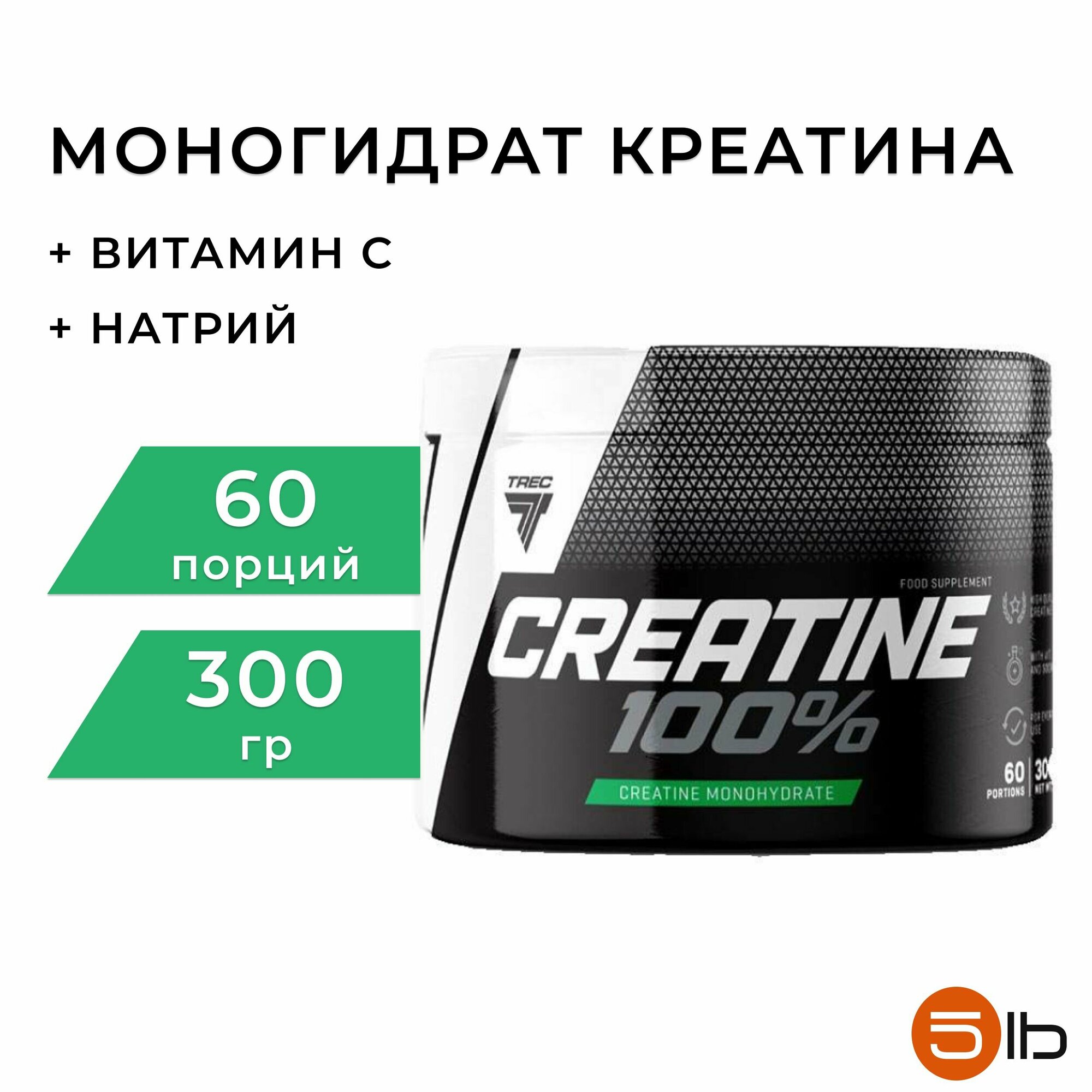 Креатин моногидрат порошок 300 г (60 порций), Trec Nutrition Creatine 100% анаболик для роста мышечной массы, выносливости
